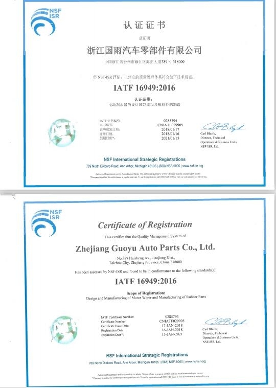 “GYT國(guó)雨”汽車(chē)刮水器橡膠條產(chǎn)品執(zhí)行TL-W-659標(biāo)準(zhǔn),憑借30多年的技術(shù)和研發(fā)能力,擁有適應(yīng)特殊高溫、低溫氣候和綜合匹配復(fù)雜環(huán)境的CR等產(chǎn)品配方,結(jié)合先進(jìn)的表面處理方式及切割技術(shù),保證了優(yōu)良的刮凈度和使用壽命,成為國(guó)內(nèi)OEM客戶(hù)選擇的配套品牌和全球眾多知名客戶(hù)選擇的品牌。